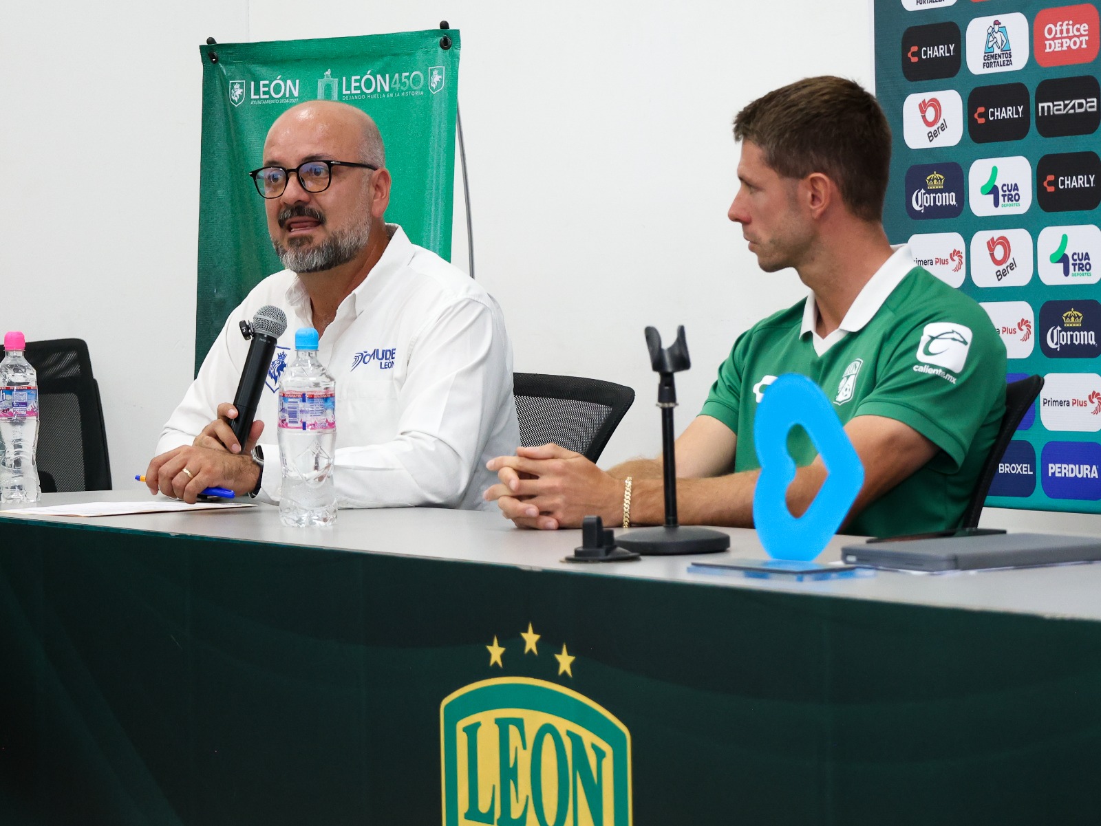 La rueda de prensa fue presidida por Jonatan Di Giosia, director de fuerzas básicas de Club León; Isaac Piña Valdivia, director general de Comude León, Andrea López Gutiérrez, directora general del Sistema DIF León y Armando Sánchez, director de visorías del club esmeralda.